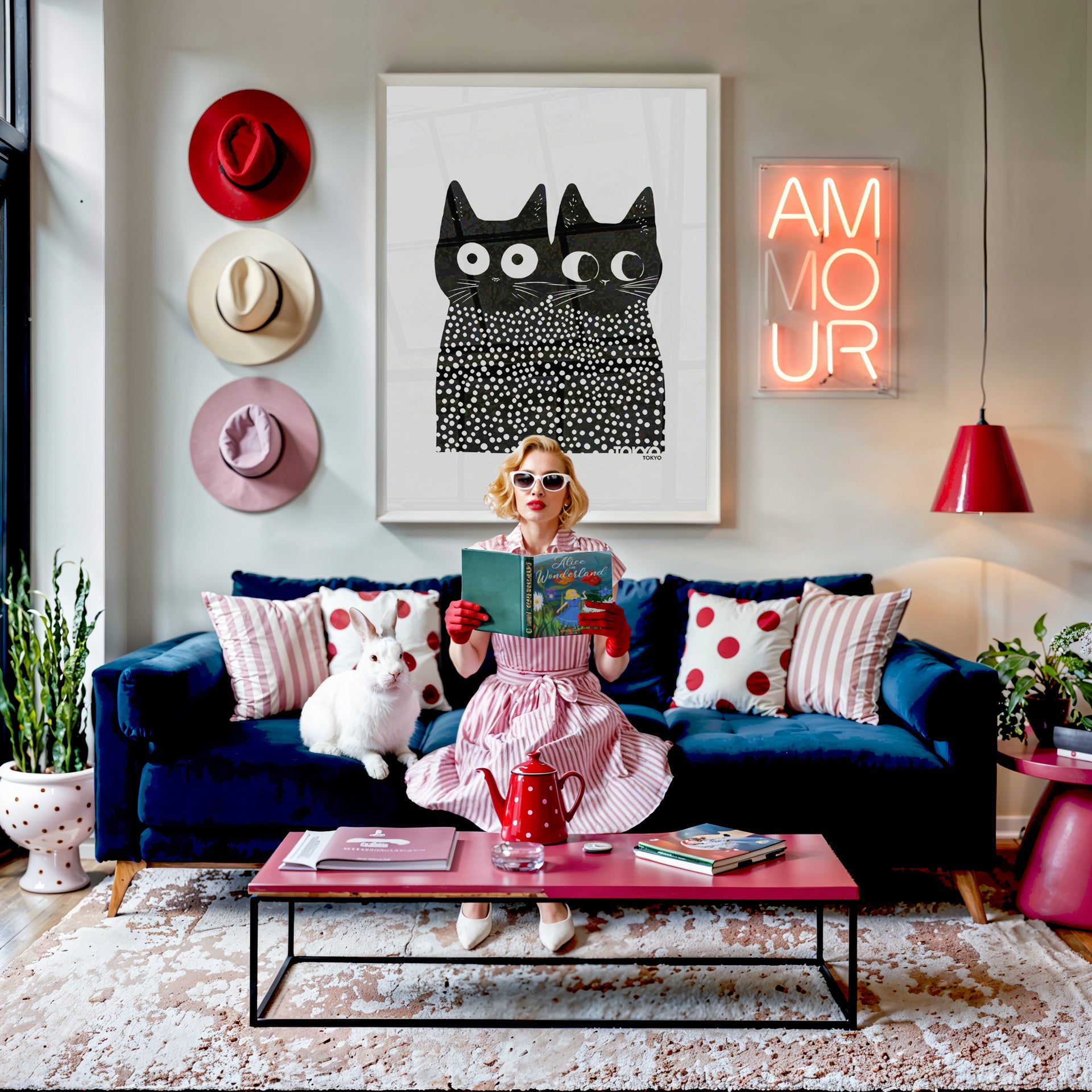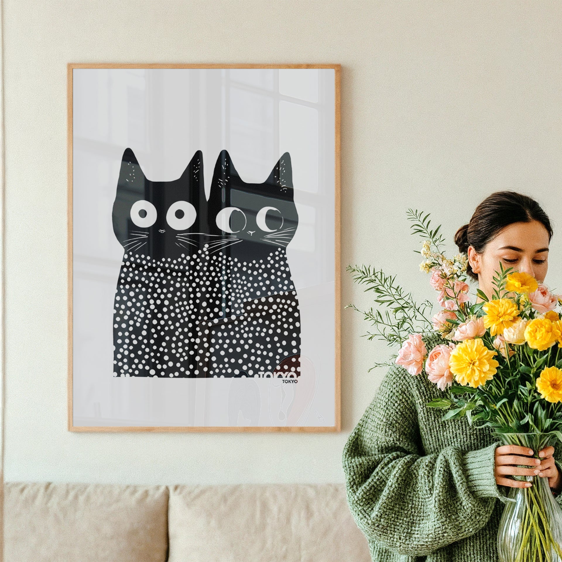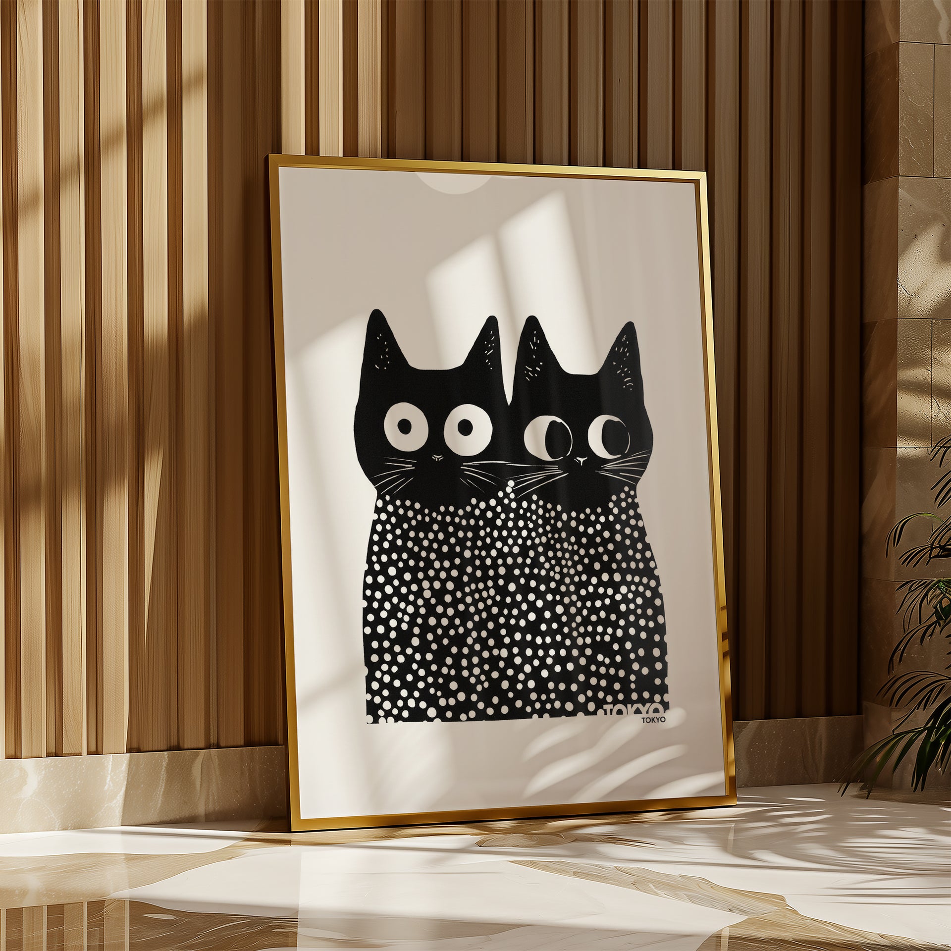 Two Cats Dotted, Yayoi Kusama Inspired Artwork, Framed Giclée Fine Art Poster Print