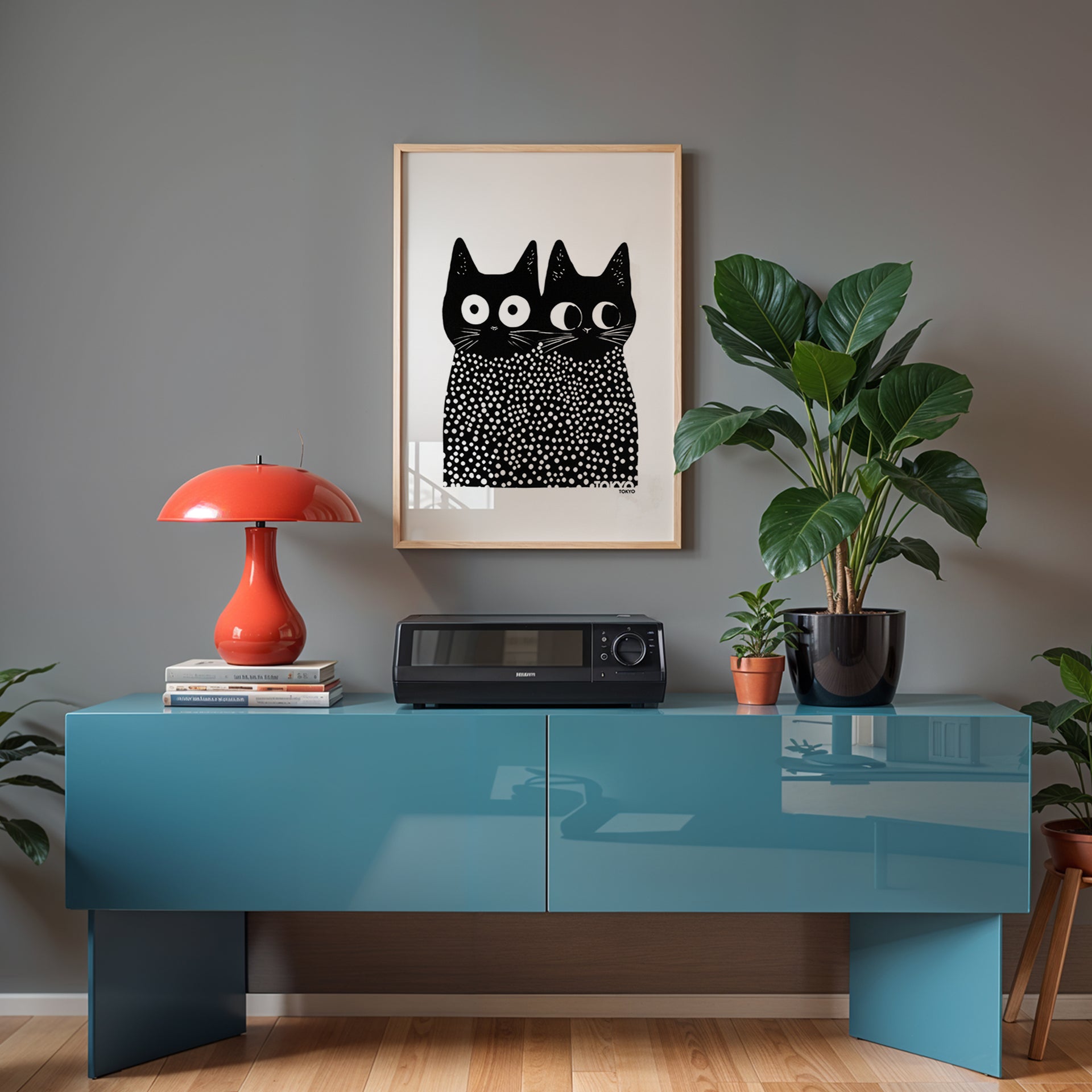 A graphic yet playful piece that works beautifully in both minimalist and character-filled spaces. The strong contrast and simple composition make it easy to live with — striking without overwhelming.