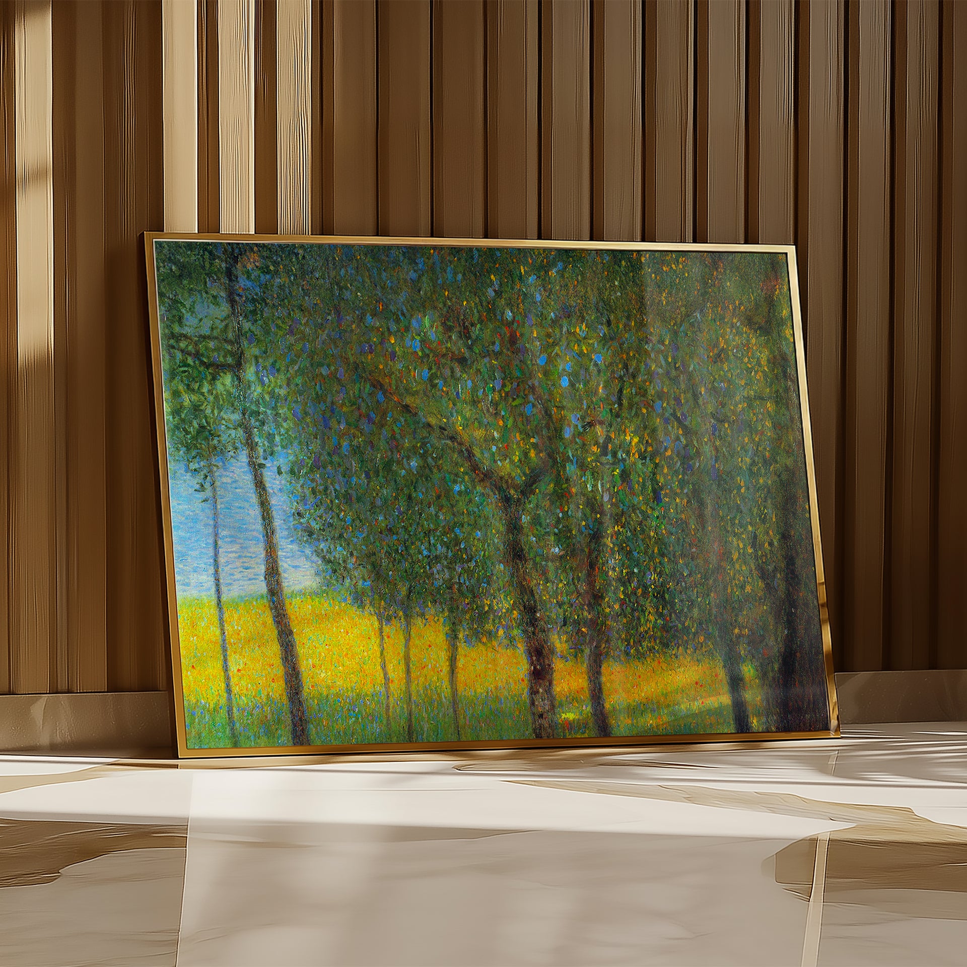 Painted during Klimt’s later period, the work reflects his distinctive approach to landscape, where depth is flattened and nature is treated as pattern rather than perspective. Printed as a museum-quality giclée using archival inks on fine art paper, this piece offers a striking example of early 20th-century modernism.